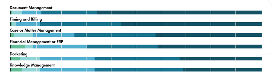 When it comes to efficiency within a law firm, year after year, these six items have had the highest number of responses of “high-” or “moderate impact”: