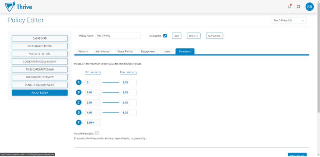Configurable Policies +Timescore Calculations